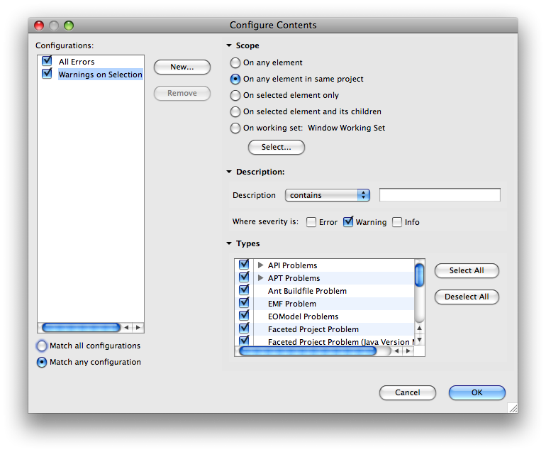 Just noticed 3.4 lets you configure multiple problems view profiles: